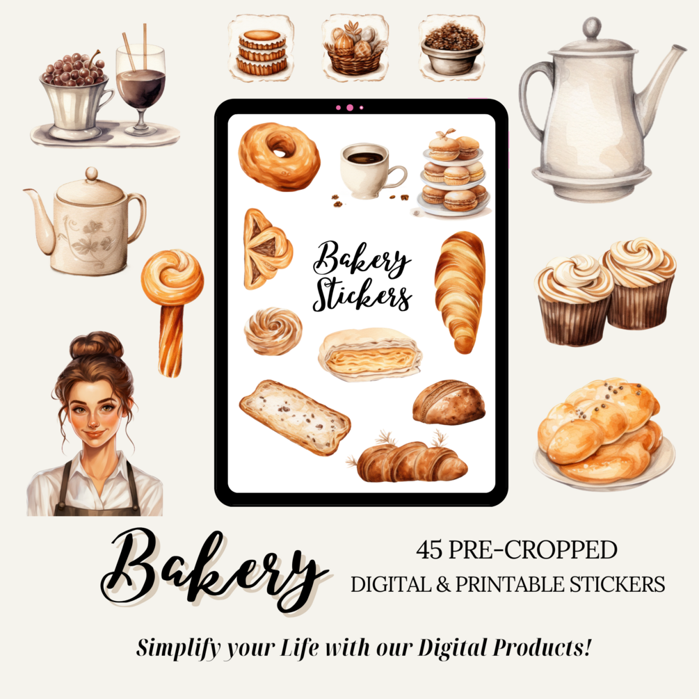✔ Variety of bakery-themed illustrations (cupcakes, donuts, bread, and more)